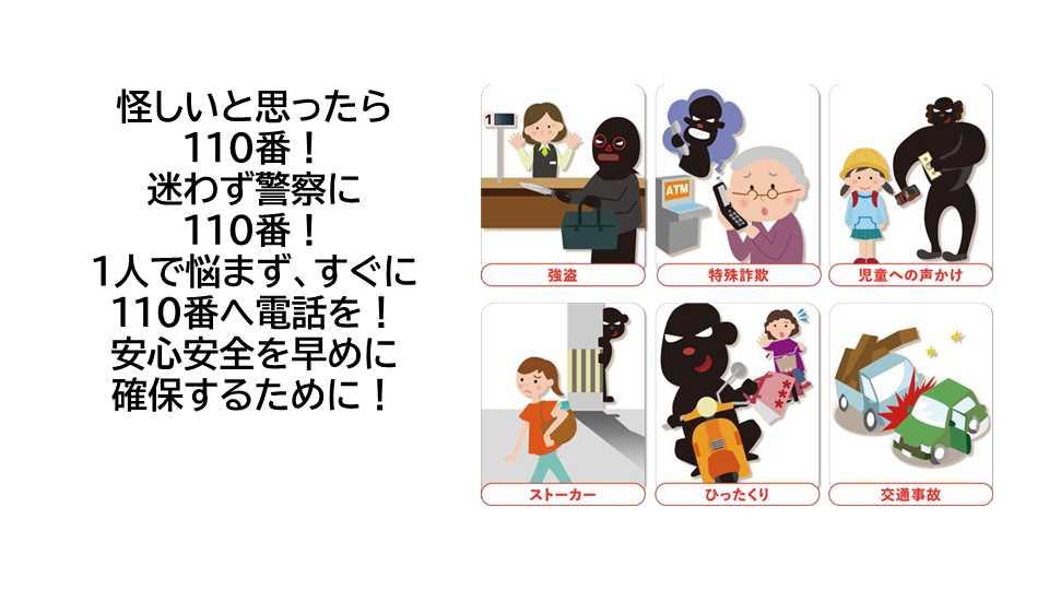 場合は、直ぐに対応せず、一旦、数日保留にし、くれぐれも1人で悩まず、すぐに警察(110番)へ電話をしてください。