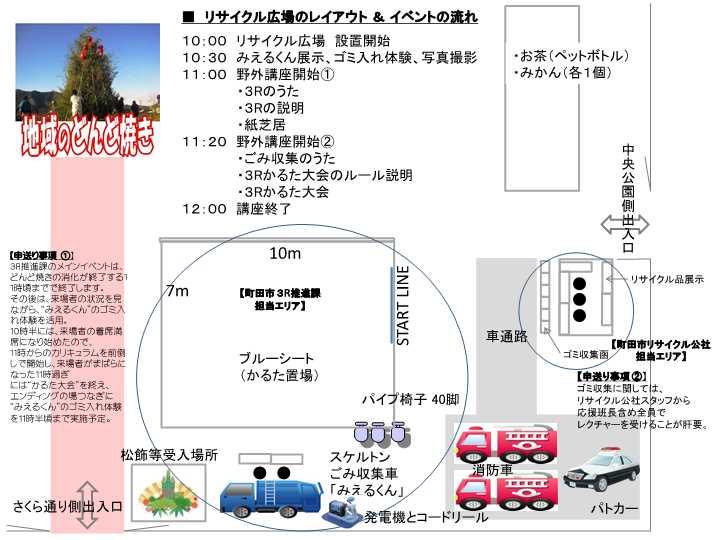 一覧へ リサイクル広場開催のご案内 投稿日時: 2022/12/16 自治会KDY リサイクル広場を下記の日程で実施予定です。 2023年1月14日(土) ※雨天時、リサイクル広場は中止です。 どんど焼は15日に順延になります。
