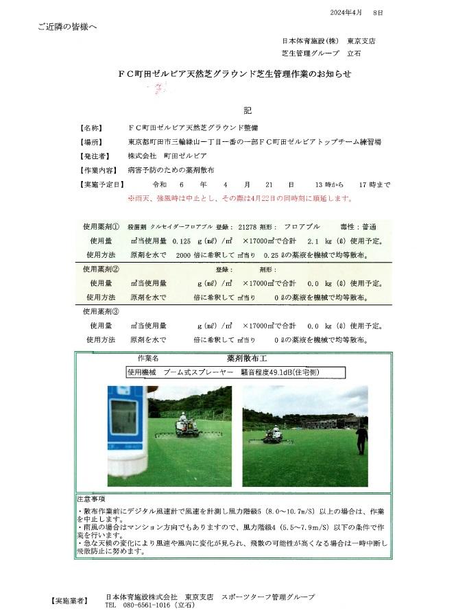 FC町田ゼルビア天然芝グラウンド芝生管理作業のお知らせ